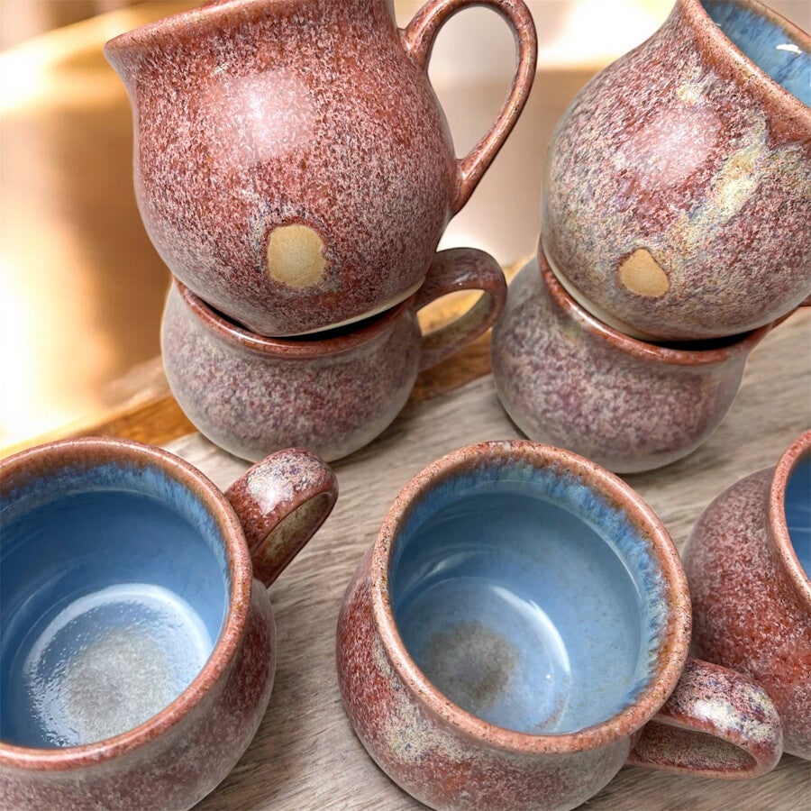 Kubeczek na kawę,cherbatę,grzańca ,ręczna robota,kamionka wypał 1240 stopni, wymiary 8 cm.wysoki,7cm. szeroki.Pojemność 200ml. Kubki bodobne szkliwienie niepowtarzalne. Można myć w zmywarce.